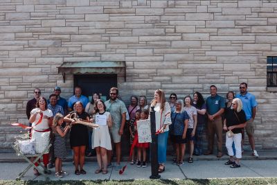 Ribbon cutting ceremony for Frame55 on August 15, 2025 on site in downtown Hope. Photo credit: Natalie Petro- Hamilton Photography.The 700-square-foot studio space, located at 343 Washington St., offers clients access to nearly half a dozen thematic scenes, including a living room, kid scene, and a rotating seasonal set, as well as a prop closet and additional professional backdrop options.