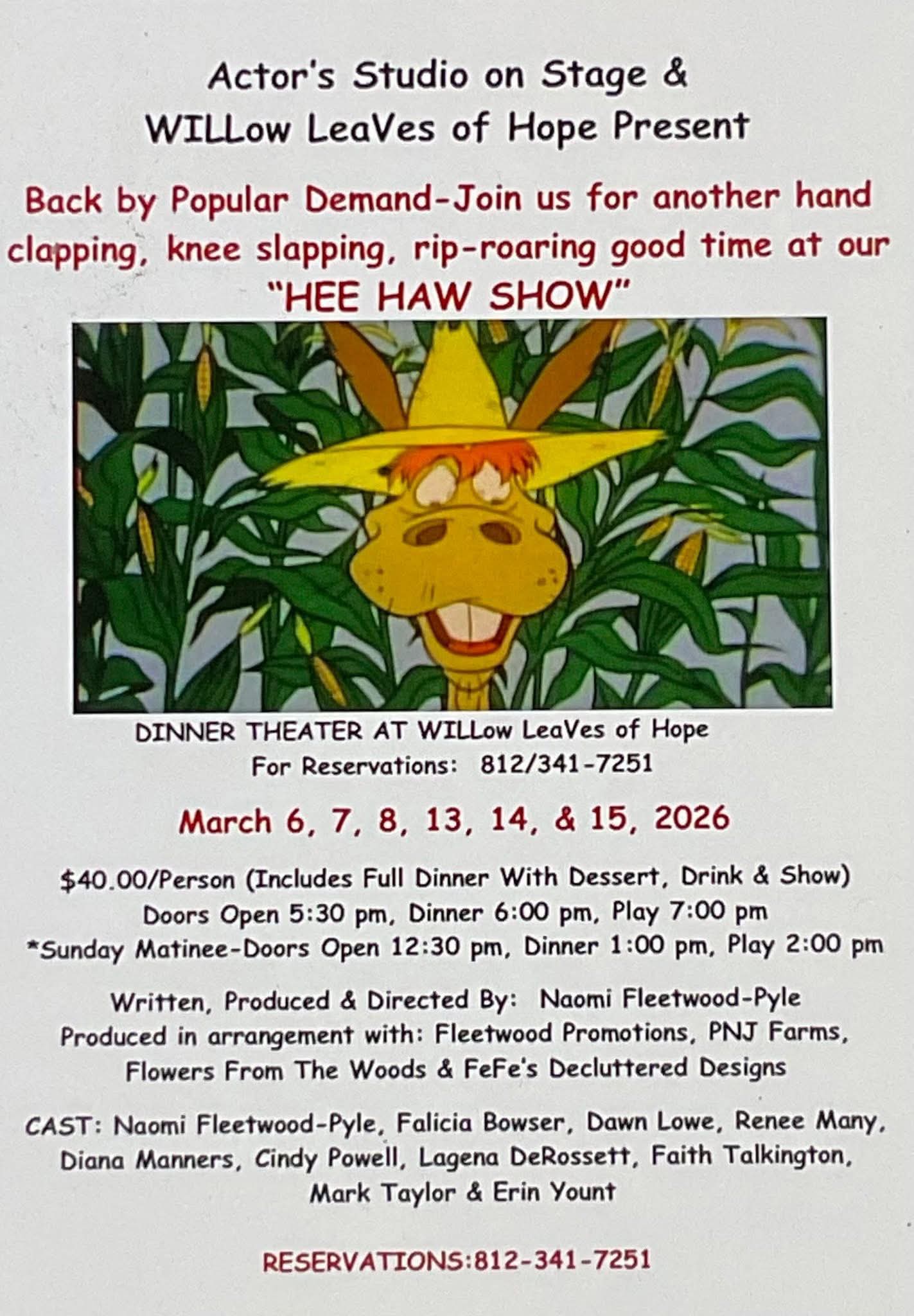 Tickets on Sale NOW for the Return of 'Hee Haw Show' Opening at WILLow LeaVes 03/06